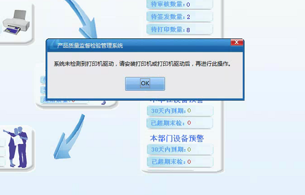 點擊審核、簽發、打印都報'未檢測到打印機驅動'錯誤彈窗
