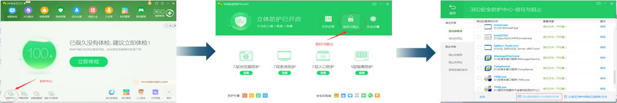 打開360安全衛士(電腦管家),選擇木馬查殺(病毒查殺)找到【隔離區】內的TMIS文件,關于CMIS的文件選中之后,進行恢復,然后選擇程序,添加到信任區即可。