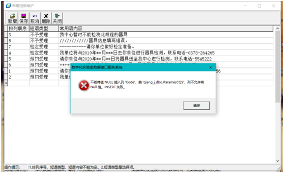 可能原因:排列順序號不能重復,短語類型和常用語內容不能為空。