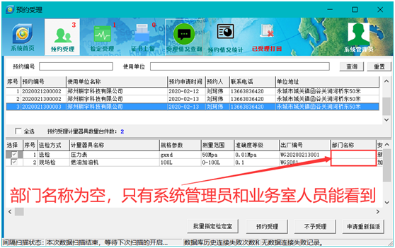 預(yù)約受理的器具沒有科室信息(科室收不到企業(yè)送檢的器具)(可自行對照)