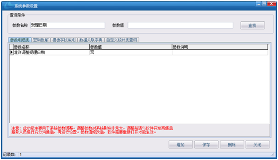 解決辦法:在【系統設置中心】中的【系統設置參數設置】中的【準許調整受理日期】的參數值調整為“是”