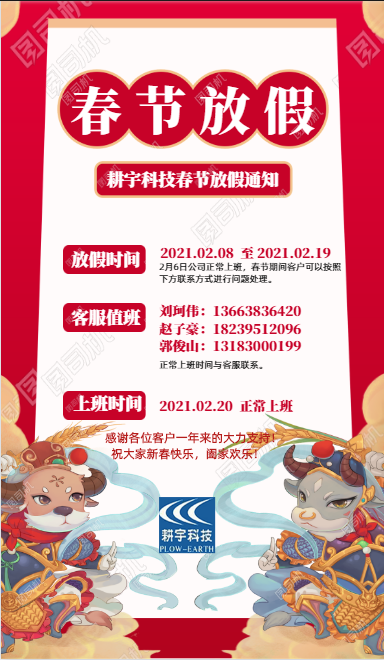 關(guān)于2021鄭州耕宇公司放假安排通知